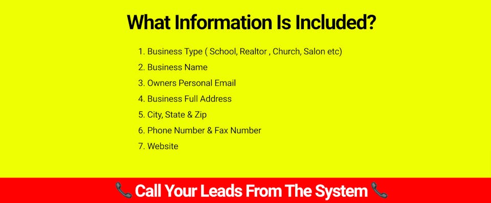 Set your parameters of what you want to find & the System Will Find It For You By searching millions of leads available. Search by type, company, email, address, city, state, zip code, phone number, and more.