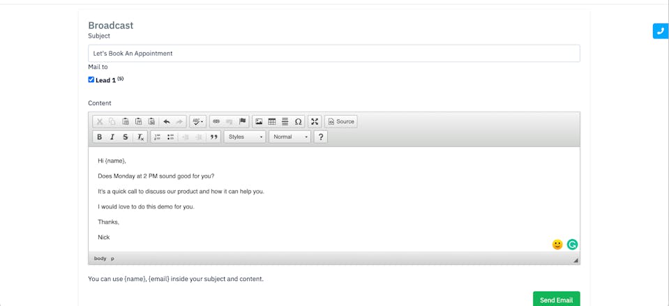 Send Email To One Lead Or Multiple Leads.Â